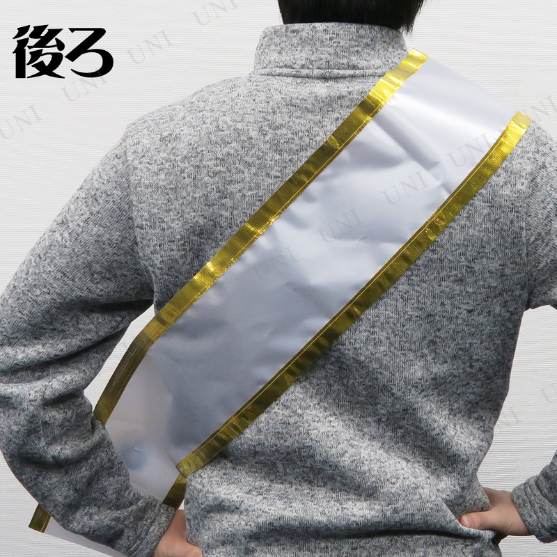 ゴールドラインで煌びやかなタスキです。やはり主役は輝いて目立っていないと困ります!誕生日パーティーや結婚式の2次会などで主役の人にかけてあげましょう★