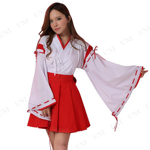 ミニ丈でちょっぴりカジュアルな雰囲気に!可愛らしい巫女さん風コスチュームです。ハロウィン仮装やコスプレイベントなどでどうぞ