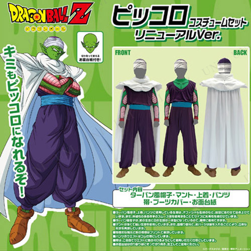 手軽に変身!キャラクターコスプレを楽しもう!大人気アニメ「ドラゴンボールZ」より、ピッコロのコスチュームです。オフィシャル監修の元、ターバン風帽子、上着、パンツに使用している生地は設定に合わせて染め上げています。首周り部分と肩パーツは、綿を入れることにより立体的な形状を再現。切り取って使えるお面台紙付き。ハロウィン仮装やコスプレイベント等、カッコよく着こなしちゃおう!