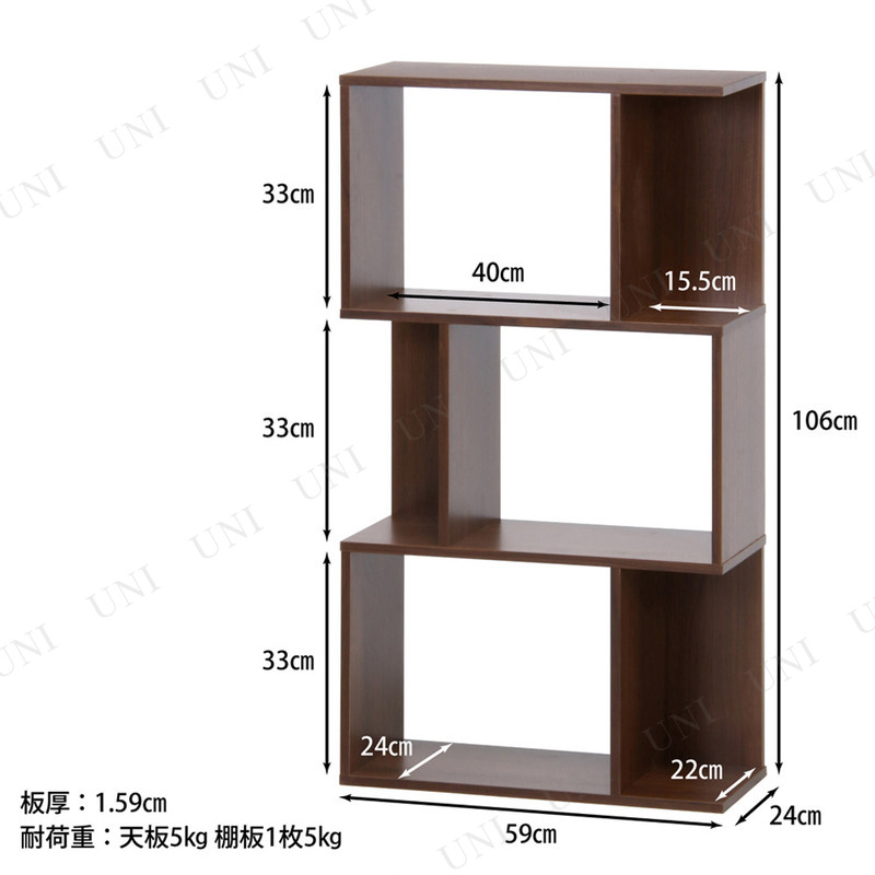 S型ディスプレイラック 3段 ミディアムブラウン 不二貿易 家具 チェスト 棚 お客様組立品 縦置き・横置き使用可