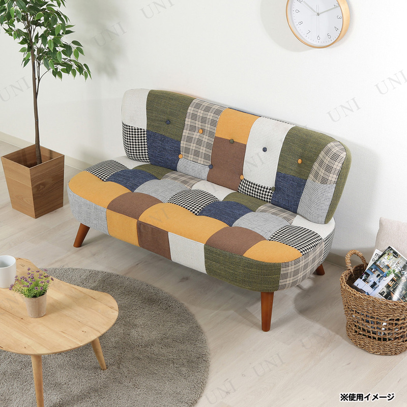 ソファ2p デイジー パッチワーク オレンジ