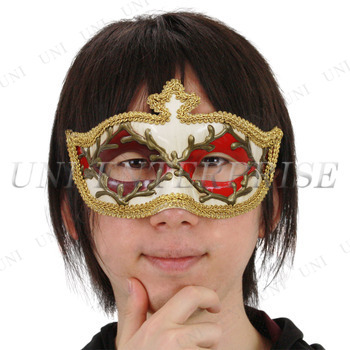 仮面舞踏会でおなじみのドミノマスク。オールド風の質感とヴェネチアンな装飾がゴージャスかつレトロ感漂うデザインです。眉間の王冠型がポイント!道化師・ピエロコスチュームと合わせるのもオススメです