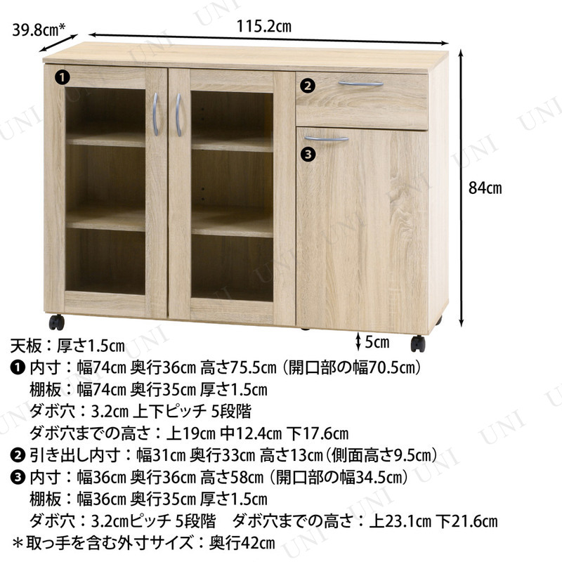 キッチン収納キャビネット 115×40cm,台所用品,キッチン用品,キッチンラック,収納台,インテリア雑貨,リビング家具,棚,収納家具,おしゃれ,キッチンワゴン,カウンターワゴン,キャスター付き,キッチン収納