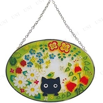 ステンドフレーム猫とお花楕円,インテリア雑貨,ガラス細工,ミニチュア,置物,サンキャッチャー,風水,小物