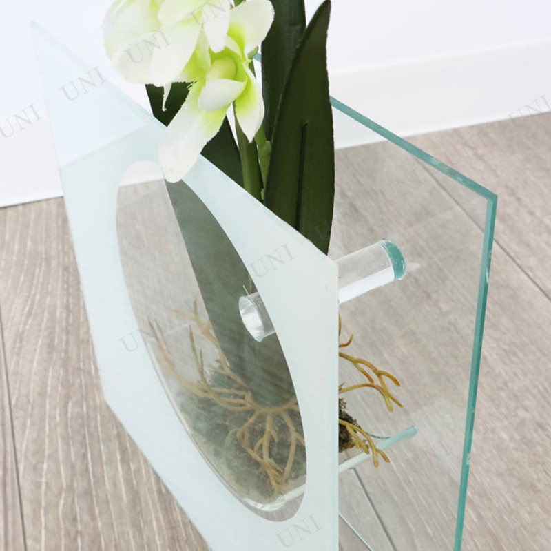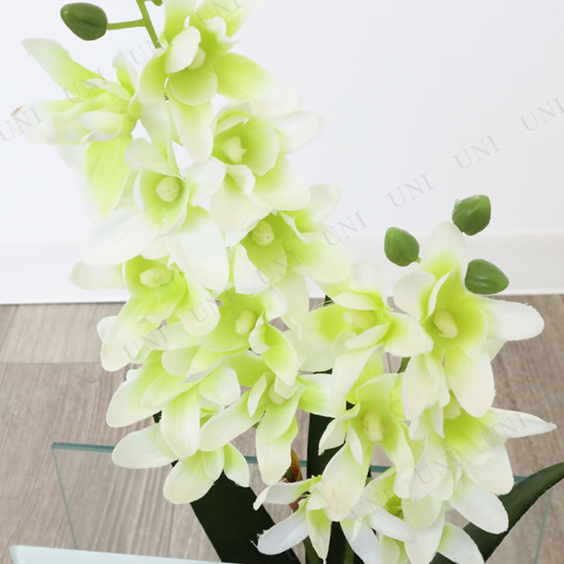 色合いがとても綺麗な造花付きガラス花瓶。清潔感のあるガラスベースに欄の花(造花)をアレンジしました。リビング、玄関、机の上、洗面所など、一つ置くだけでとても素敵な雰囲気を演出してくれます。ギフトにも最適です