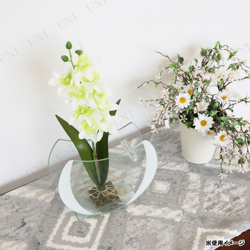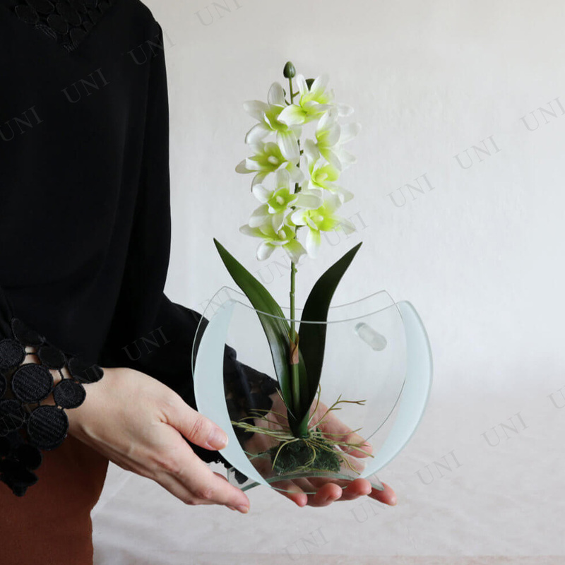 色合いがとても綺麗な造花付きガラス花瓶。清潔感のあるガラスベースに欄の花(造花)をアレンジしました。リビング、玄関、机の上、洗面所など、一つ置くだけでとても素敵な雰囲気を演出してくれます。ギフトにも最適です
