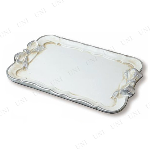 立体的なリボンの装飾が美しいトレーです。アンティーク調シルバーの色合いが華麗で優美な空間を演出。気品溢れる可愛らしいインテリア、テーブル装飾がお楽しみいただけます