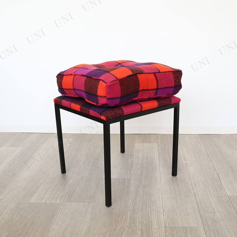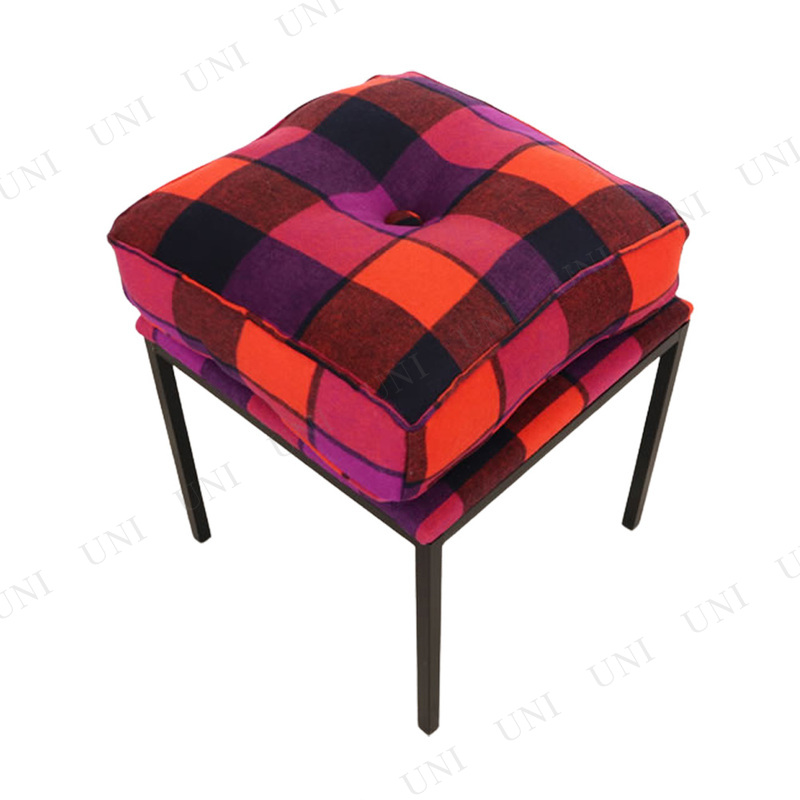 【取寄品】 スツール チェアー&クッション オレンジチェック