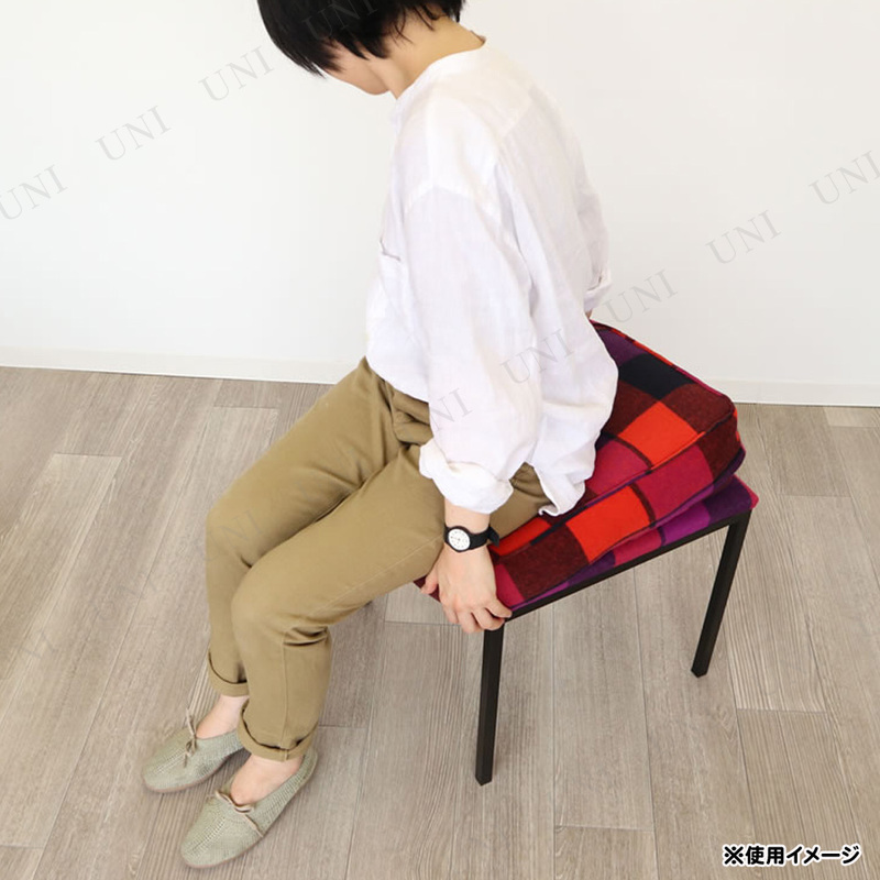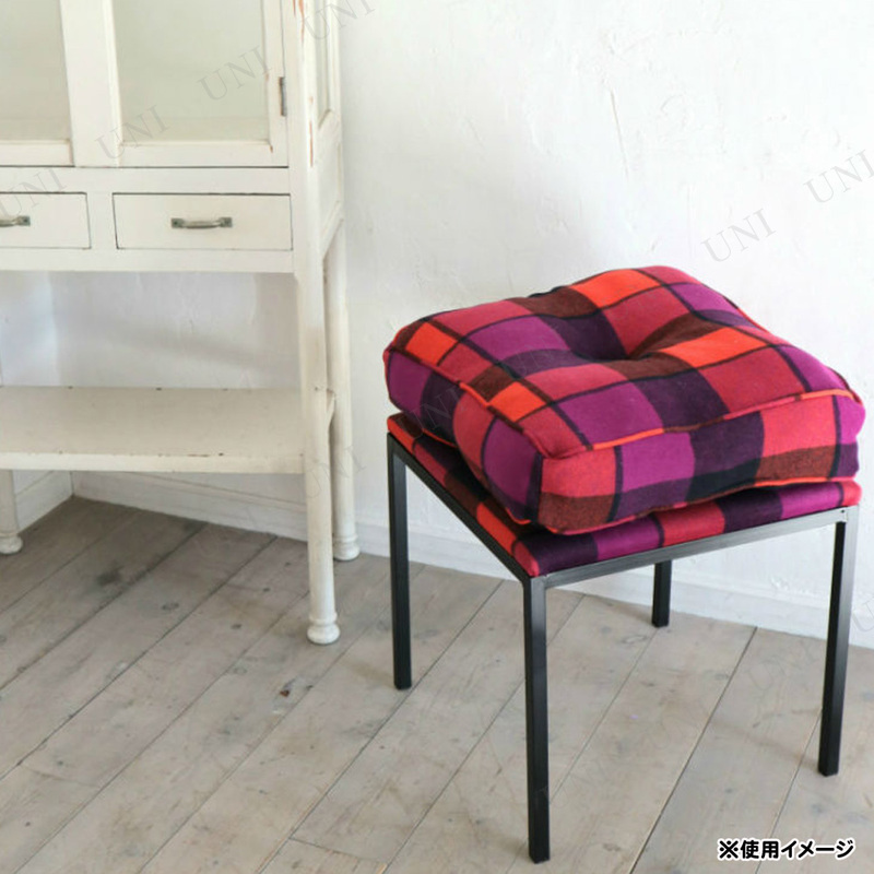 可愛いチェック柄の四角いスツール。ふかふかのクッションがついています。ベランダでひとときを楽しむスツールにしたり、鏡台用のスツールにしたりと様々なシチュエーションで活躍できます