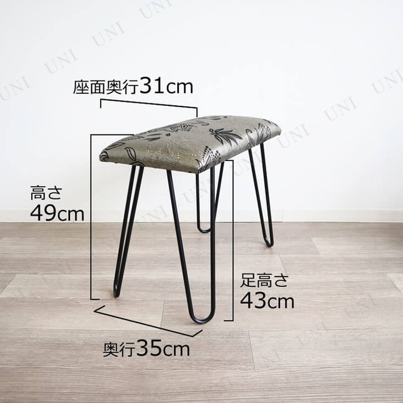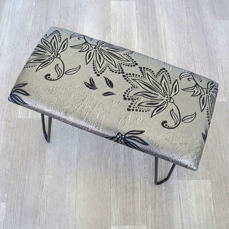 シルバー&ゴールドにブラック系ヤツデ柄のモダンなスツールです。ベランダでひとときを楽しむスツールにしたり、鏡台用のスツールにしたりと様々なシチュエーションで活躍できます