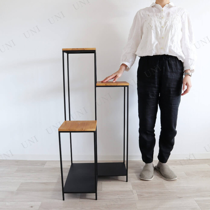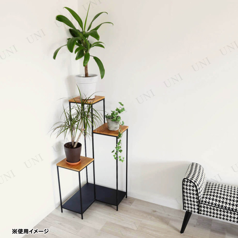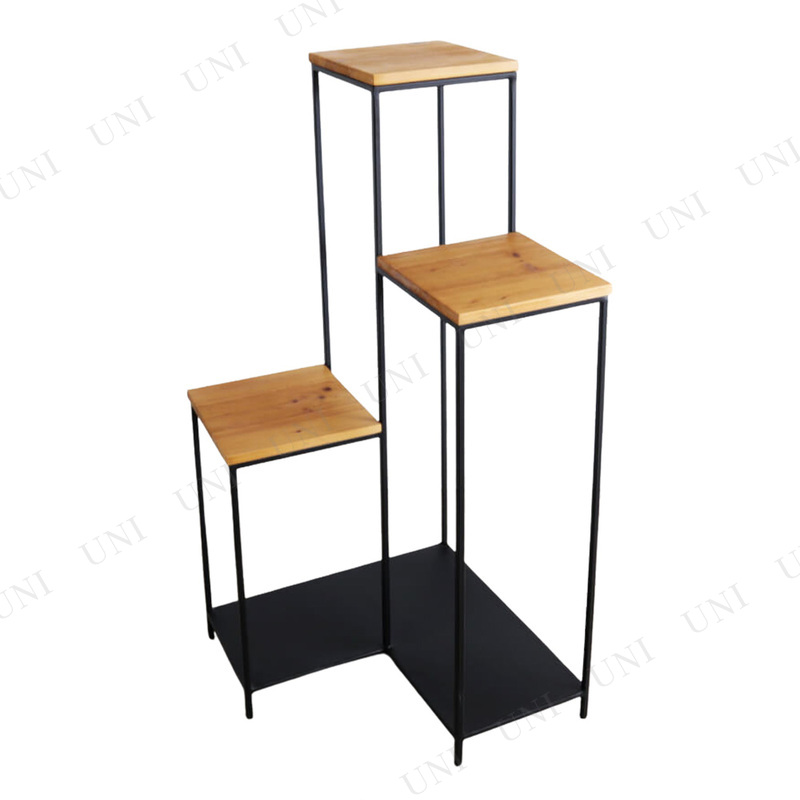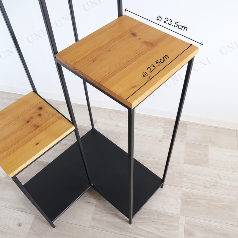木と鉄の対比が美しいコーナーフワラースタンド。3つの異なる高さが空間を立体的に演出。シンプルながら実用的なデザインでアイアン製の下棚が収納スペースとして機能しています。自然な温かみと洗練されたスタイルを両立させた、魅力的なインテリア