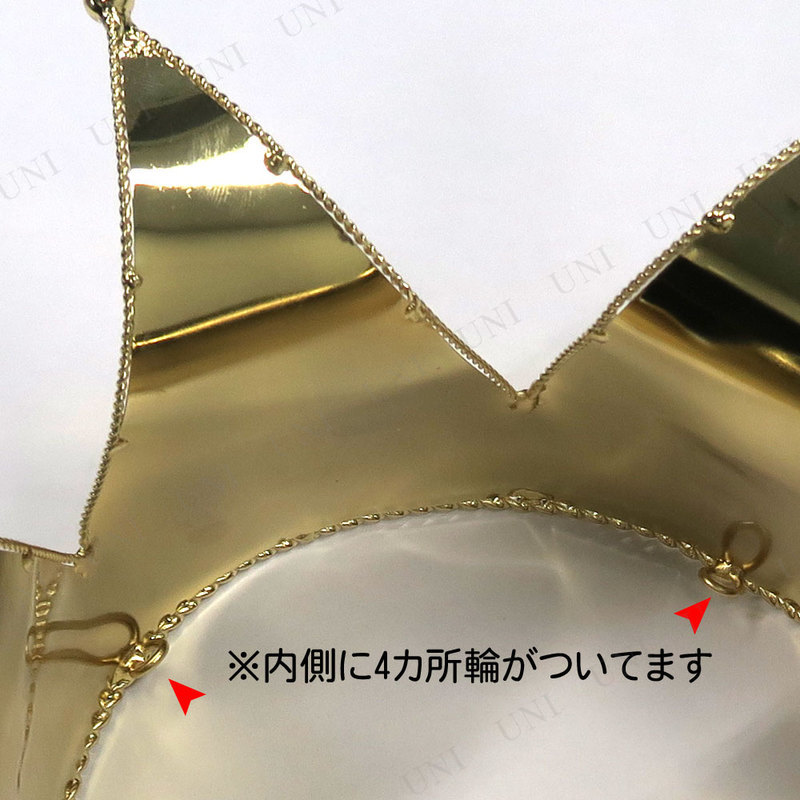 「不思議の国のアリス」に登場するハートの女王風の王冠です。まるで黄金のような質感で高級感あふれるミニクラウン。クイーンのコスチュームに欠かせないアイテム!