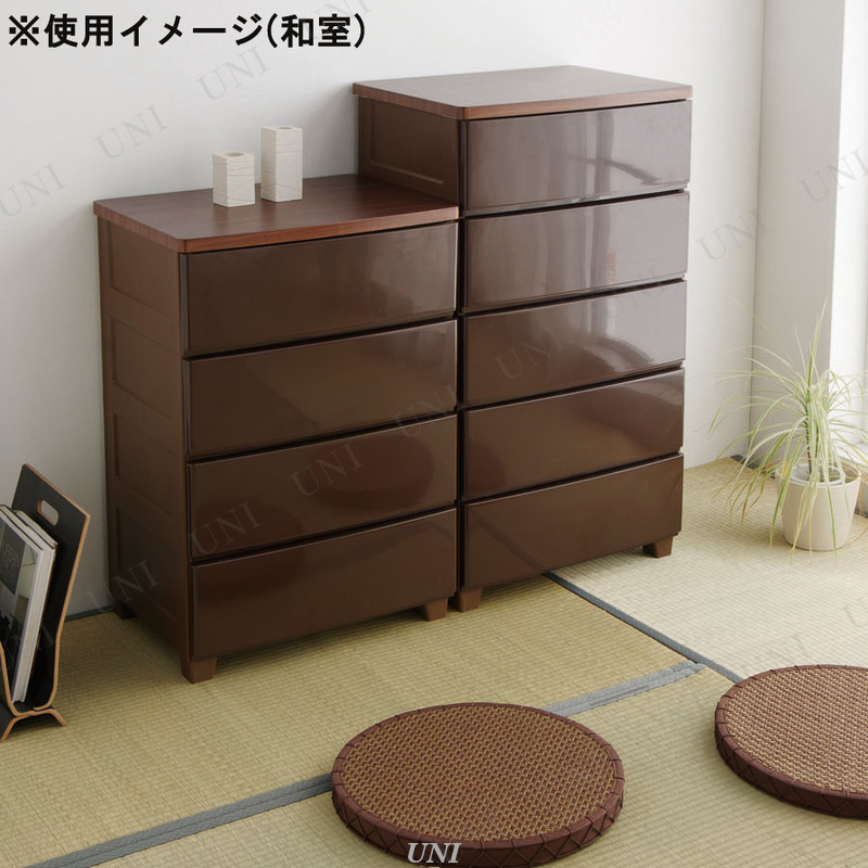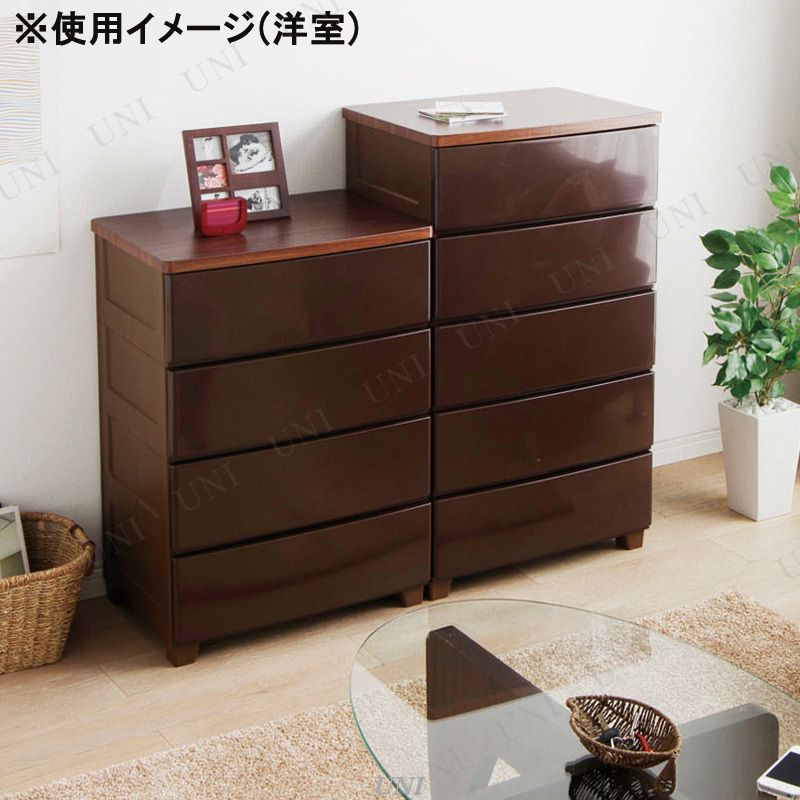 洋室・和室を問わず、どんな空間にも合わせやすいシンプルデザインの5段チェストです。耐久性に優れた木天板を使用し、落ち着いたブラウンカラー。引出しは金属レールでスムーズに開閉可能。側面・後面までしっかりカバーされていてホコリが入りにくく、また脚付きでお掃除がしやすい!衣類の収納はもちろん、さまざまな用途でお使いいただけます
