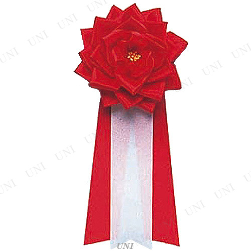 式典イベントにぴったりの華やかな赤いリボンバラの胸章、中サイズです。来賓の方用におすすめです