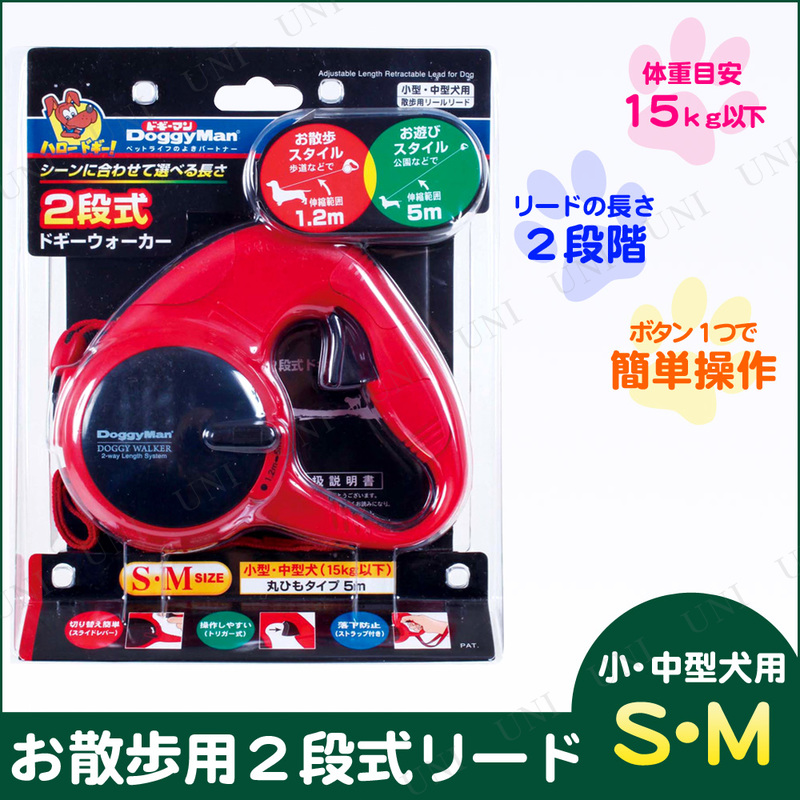 【取寄品】 ドギーマン 2段式ドギーウォーカーSM 小・中型犬用 レッド(伸縮リード)