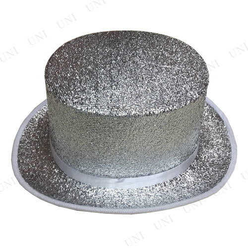 キラキラ輝くラメ仕様!高い円筒上のクラウンが特徴のシルクハットです。ゴージャスな銀色の帽子はリボンが付いており、変装小物として様々な用途、シーンにお使いいただけます。かぶりやすく脱ぎやすいので、ダンスや演劇などの衣装小物、イベントやパーティーのコスプレアイテムとしても大活躍!ポップなマジシャン仮装にもおススメ!