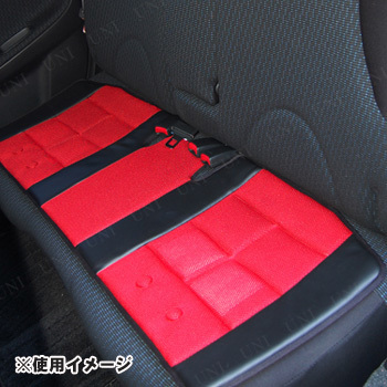 レッドとブラックの配色がかっこいいリア用クッションです。トルマリン&マグネット入りで長距離ドライブにもおすすめ。 ズレ防止のストッパー付きで簡単設置
