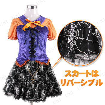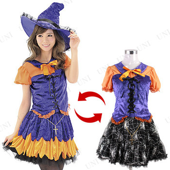 パープル×オレンジのハロウィンカラーがとってもかわいいウィッチコスチュームです。ウィッチハットもついてこれ一つで手軽に変身できちゃう!スカートはリバーシブルになっているのでその日のお好みで★