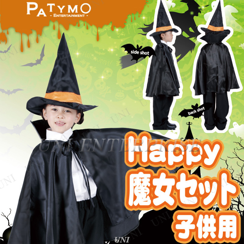 コスプレ 仮装 Patymo Happy 魔女セット 子供用,ハロウィン,子供,仮装,衣装,コスプレ,コスチューム,子ども用,キッズ,こども,パーティーグッズ,魔女,魔法使い,可愛い,ウィッチ,マント,ケープ,男の子,女の子
