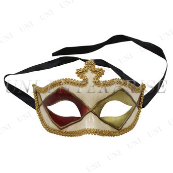 仮面舞踏会でおなじみのドミノマスク。オールド風の質感とヴェネチアンな装飾がゴージャスかつレトロ感漂うデザインです。眉間の王冠型がポイント!道化師・ピエロコスチュームと合わせるのもオススメです