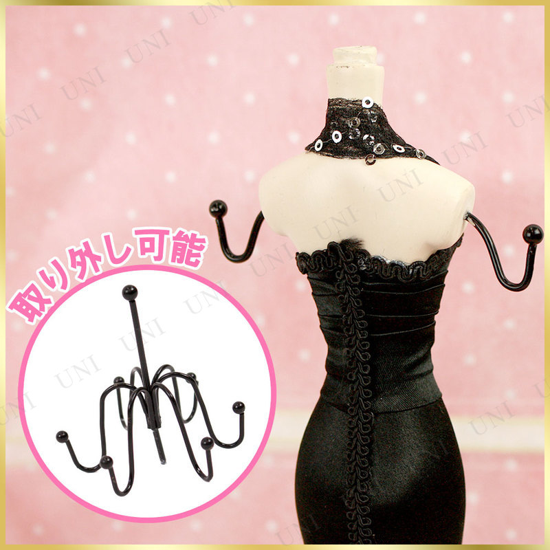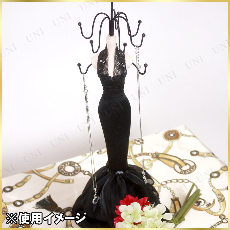 黒のドレスがシックでエレガントなドレス型アクセサリースタンドです。ネックレスやブレスレットなどを飾りながら収納でき、オブジェとしてもお部屋を華やかに演出してくれます♪お手持ちのジュエリーコレクションを、見せる収納で素敵に飾りましょう☆お店の展示用や、ギフト、プレゼントにもオススメ♪トップ部分は取り外し可能です