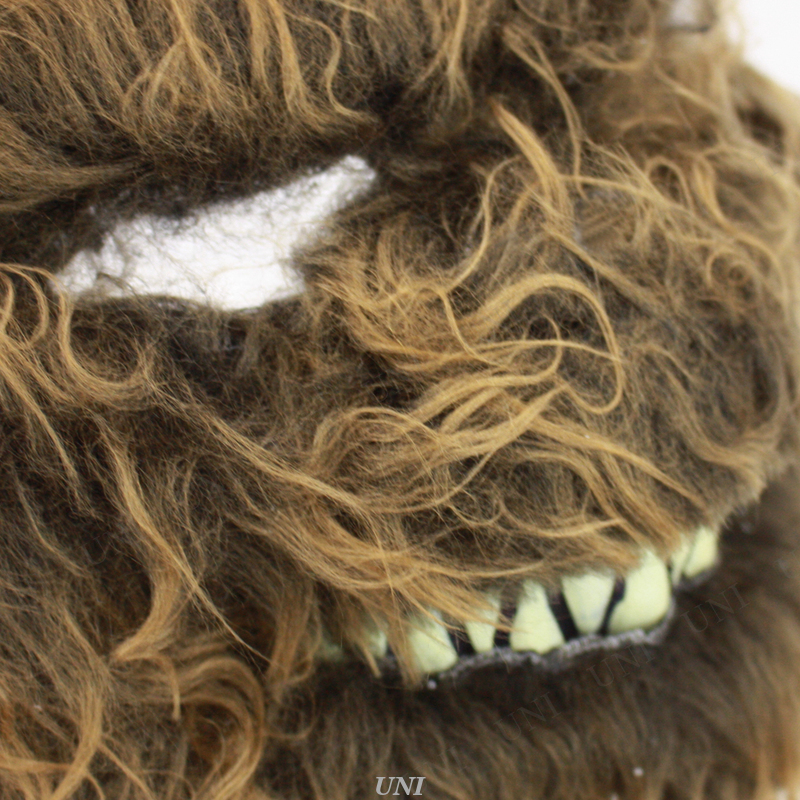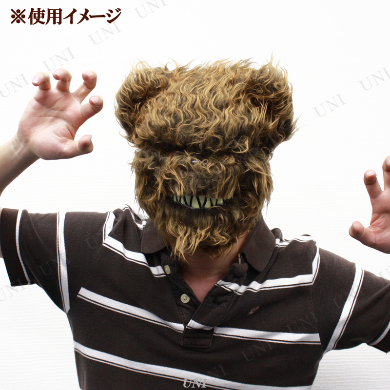不気味な微笑み!モジャモジャした茶色の毛のクママスクです。白い目と大きな口元からのぞく牙が邪悪な印象。メイク不要であっという間に熊男に変身できます。ハロウィンやホラーなイベントのコスプレ用にどうぞ