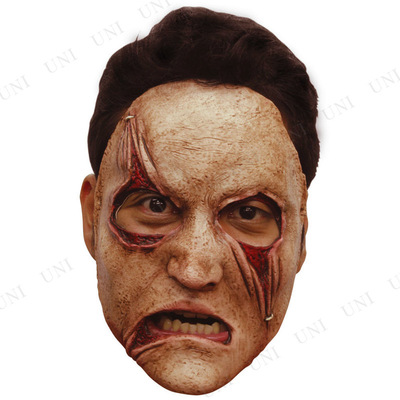 皮膚が引っ張られて固定されている不気味な顔のマスクです。ハロウィンやホラーなイベントの仮装用にどうぞ
