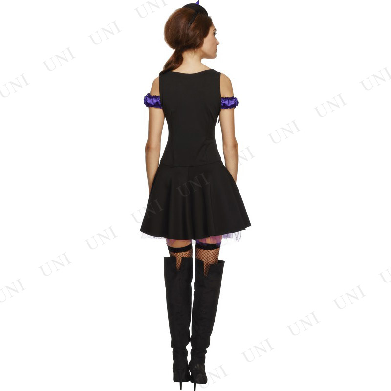 ブラックにパープルが映える魔女コスチューム。パニエ付きドレスとカチューシャのセットです