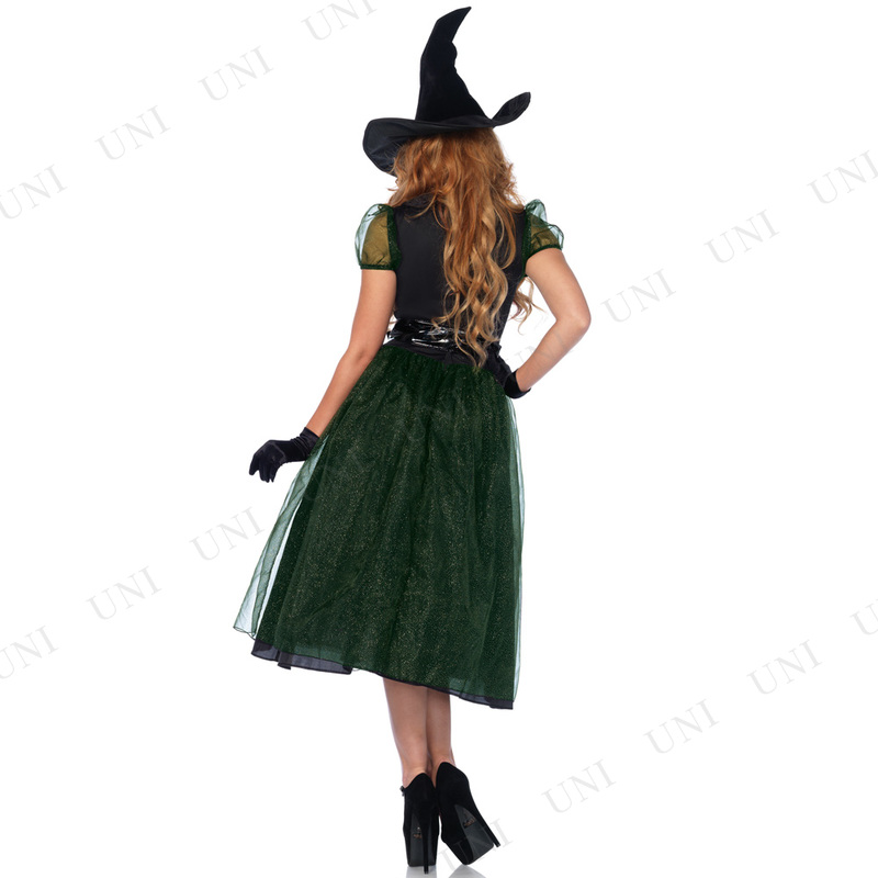 大人用の魔女コスチューム。グリッタースカートのドレスに、とんがり帽子、ベルトのセットです。別売りの魔女ほうきを持てば更に雰囲気UP!