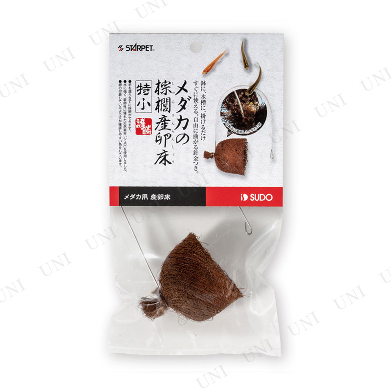 メダカの産卵用に。付着した卵が確認しやすい色と形状で、着卵性に優れた丈夫な天然の素材「棕櫚(シュロ)」を使用しています。鉢や水槽に掛けてすぐに使えるステンレス製針金付で、手を濡らさずに卵の状態を確認することができます