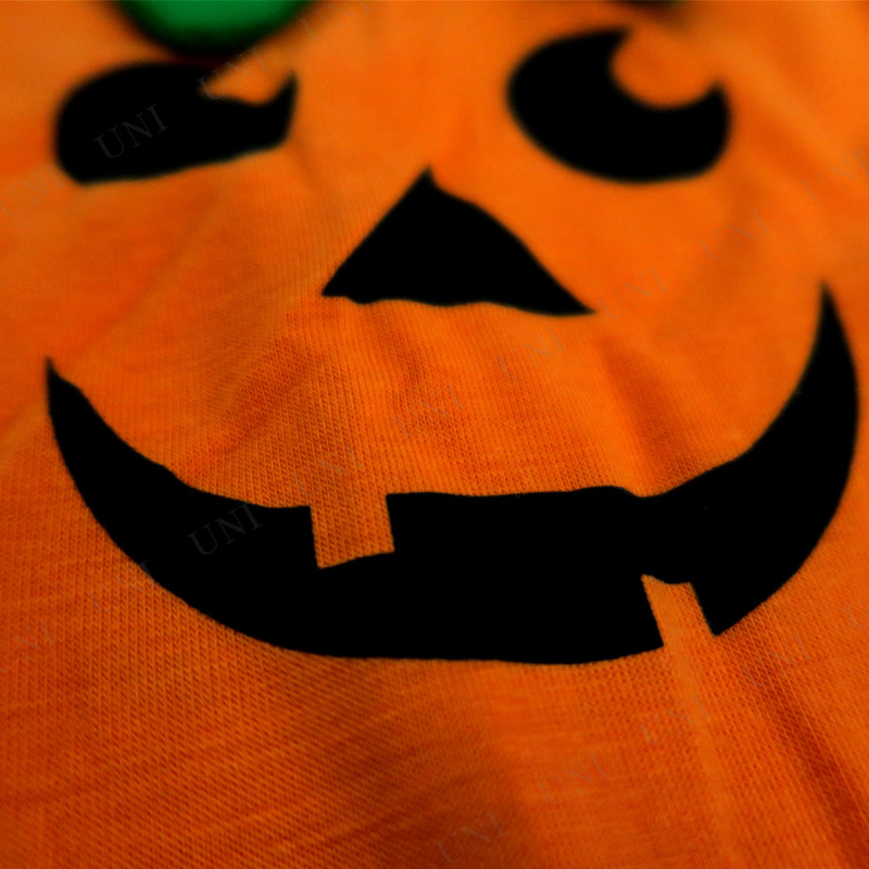 ハロウィンでおなじみのカボチャ、ジャックランタンの赤ちゃん用コスチュームです。ロンパース、帽子、靴下にジャックランタンの顔が入ったかわいいデザイン♪オレンジと緑のツートーンカラーが目を引きます。お子様のハロウィン用コスチュームにオススメ!