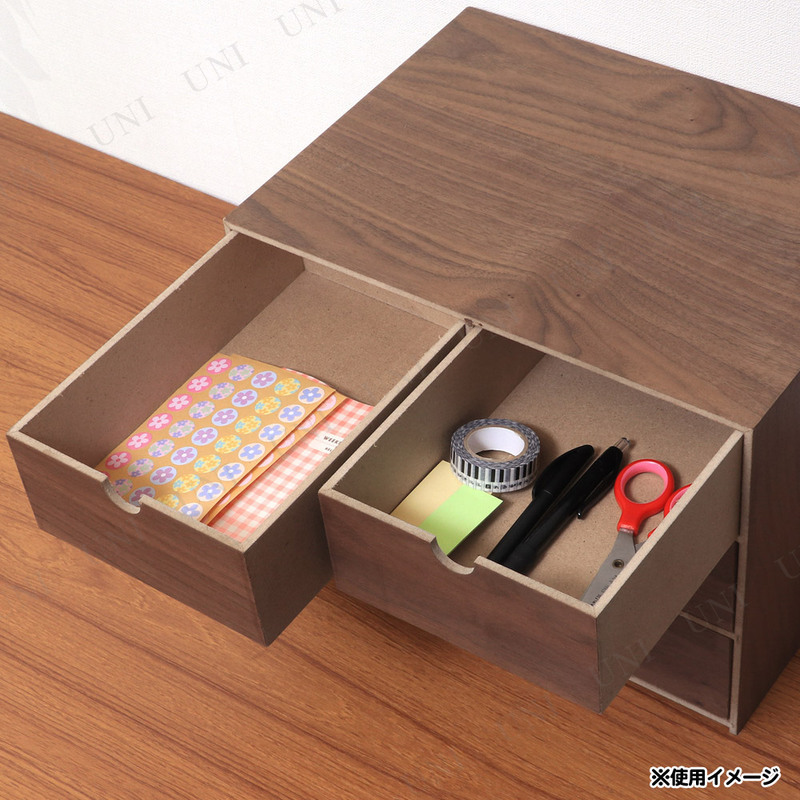 【取寄品】 突板引出付収納ケース3段 ブラウン,家具,インテリア雑貨,収納ボックス,収納ケース,小物入れ,卓上,おしゃれ,木製,デスク,整理
