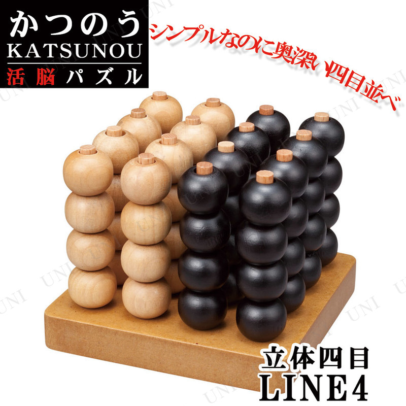 脳の健康維持を意識して、若返りを目指すパズル・エクササイズ「かつのう(活脳)」。立体四目は対戦型パズルです。16本の棒に球を順番に差していきます。縦・横・斜めと自分の球を4つ直線で並べて勝敗を決めます。立体的に位置を把握しながら先を読む奥深い木製ゲームです。数秒ごとに訪れる緊張と緩和の調節は、自律神経の活性化を促してくれます