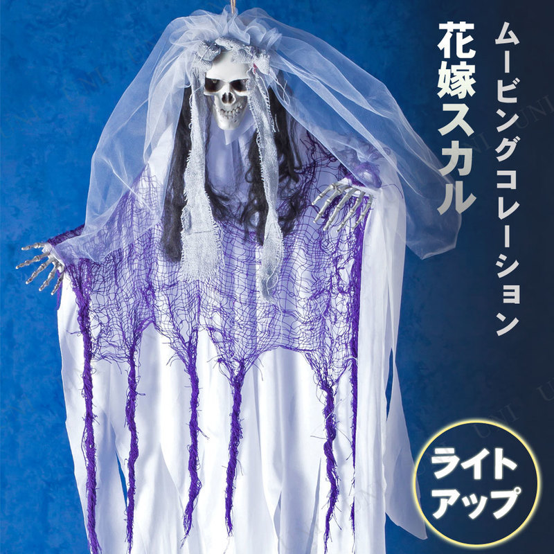 ムービング花嫁スカル,ハロウィン,雑貨,怖い,スカル,ガイコツ,ドクロ,骸骨,置物,ホラーハンギング,吊物,吊り物,吊り下げ,吊り飾り,ホラーディスプレイ,ハンギングスケルトン
