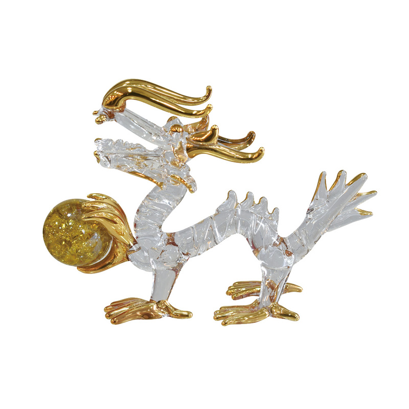 金運玉持ち龍2インチ,インテリア雑貨,ガラス細工,ミニチュア,置物,龍,ドラゴン,竜,風水