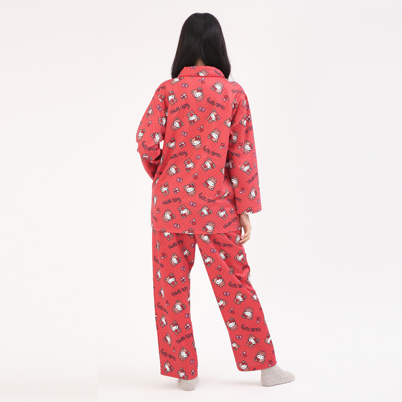 【取寄品】 SAZAC(サザック) ベアハローキティシャツパジャマ レッド レディースL,レディース,ファッション,女性用,大人用,ルームウェア,部屋着,パジャマ,寝巻き,寝間着,サンリオ,SAZAC,サザック,キャラクター,冬用,上下セット