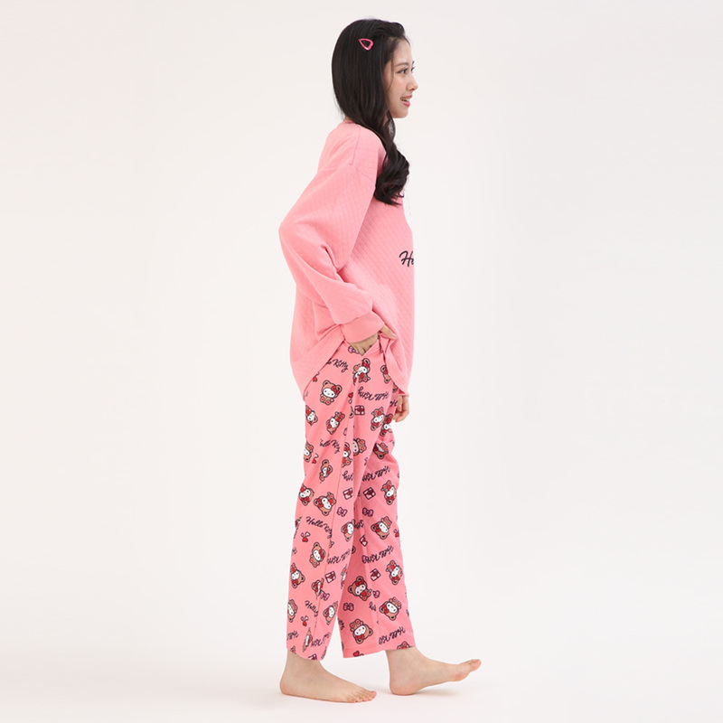 【取寄品】 SAZAC(サザック) ベアハローキティセットアップパジャマ ピンク×ピンク レディースL
