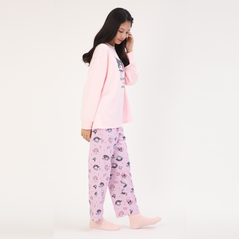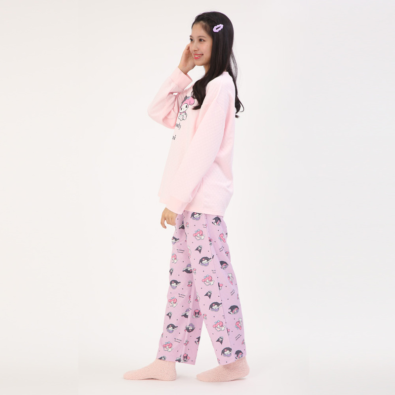 【取寄品】 SAZAC(サザック) ドリーミーマイメロディ×クロミセットアップパジャマ ピンク×ダークピンク レディースM