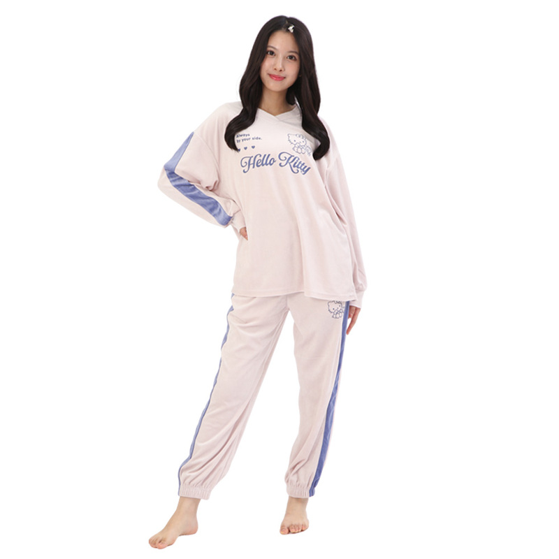【取寄品】 SAZAC(サザック) ハローキティストレッチベロアセットアップ ベージュ レディースL