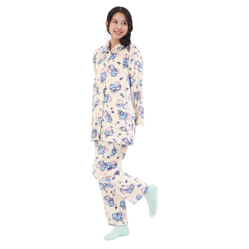 【取寄品】 SAZAC(サザック) ふんわりツインスターズシャツパジャマ アイボリー レディスM,レディース,ファッション,女性用,大人用,ルームウェア,部屋着,パジャマ,寝巻き,寝間着,サンリオ,SAZAC,サザック,キャラクター,冬用,上下セット