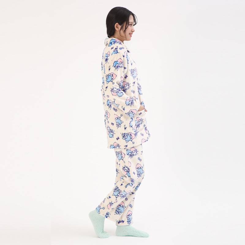 【取寄品】 SAZAC(サザック) ふんわりツインスターズシャツパジャマ アイボリー レディスL,レディース,ファッション,女性用,大人用,ルームウェア,部屋着,パジャマ,寝巻き,寝間着,サンリオ,SAZAC,サザック,キャラクター,冬用,上下セット
