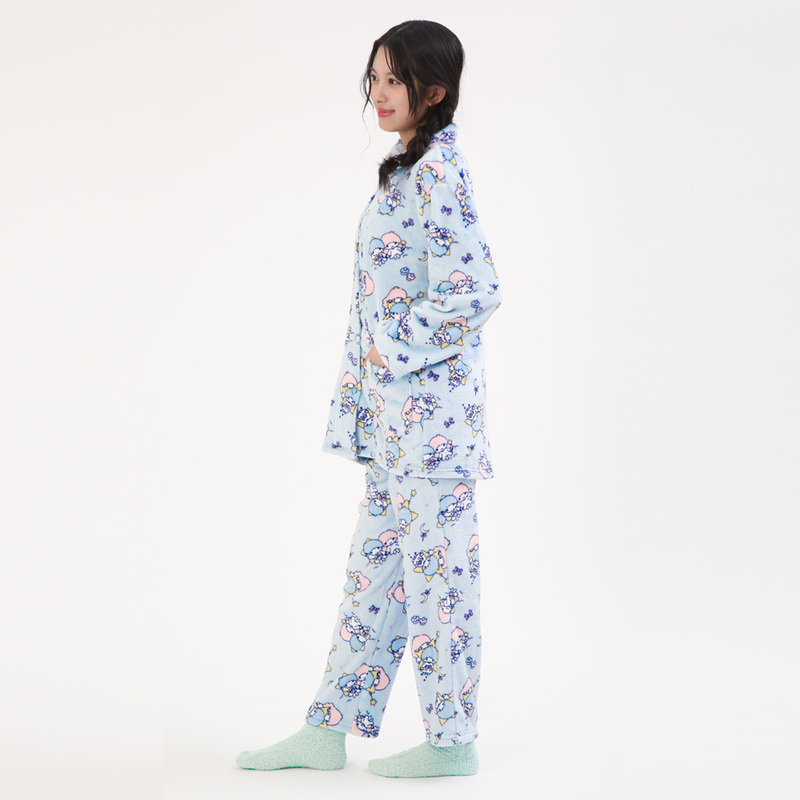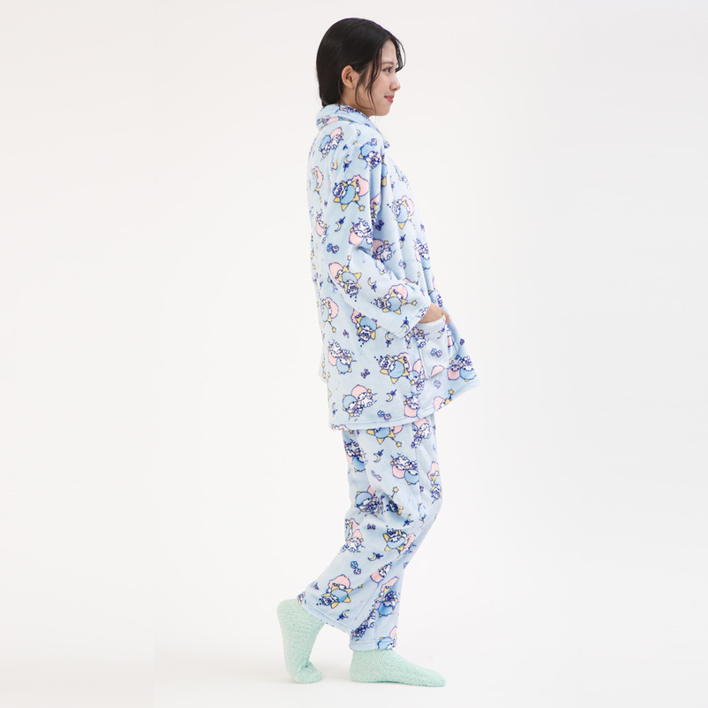 【取寄品】 SAZAC(サザック) ふんわりツインスターズシャツパジャマ サックス レディスL,レディース,ファッション,女性用,大人用,ルームウェア,部屋着,パジャマ,寝巻き,寝間着,サンリオ,SAZAC,サザック,キャラクター,冬用,上下セット