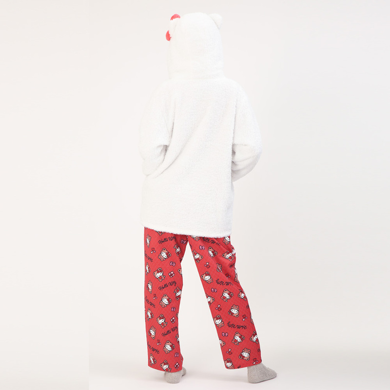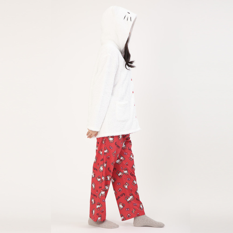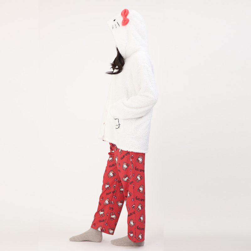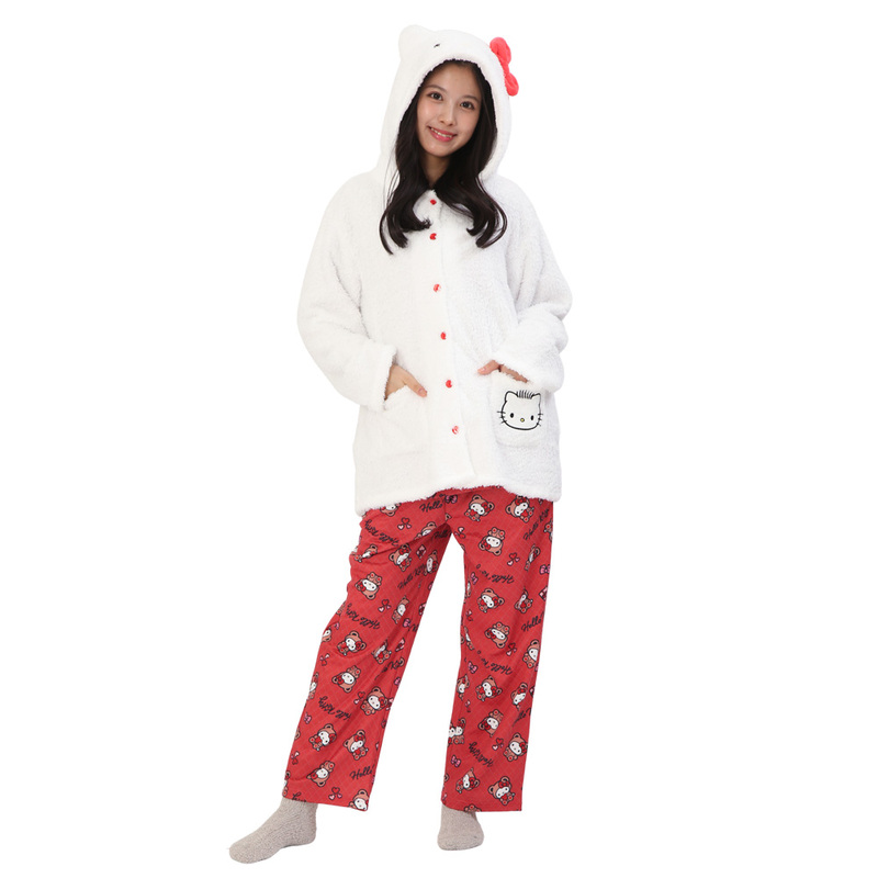 サンリオの人気キャラクターハローキティwithダニエルのなりきりガウン。ふわふわのプードルボア素材を使用したこのガウンは、可愛さと快適さを兼ね備えており、リラックスタイムにぴったりです。お部屋で過ごす時間をさらに楽しく、特別なものにしてくれること間違いなしです