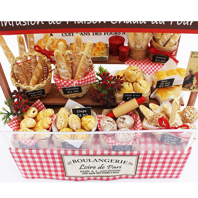 ミニチュア製作の醍醐味でもある粘土細工をお楽しみいただけるシリーズです。本場の雰囲気をそのままに、手作りのパンをかざりつけてお楽しみください!