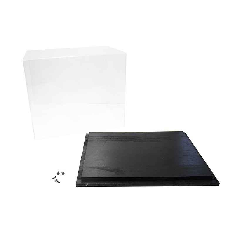 ミニチュアドールハウスの完成品の展示に最適なアクリルケースです。キズやホコリ・汚れからしっかり守って状態良く保管できます。360度どの角度からも眺めることができます。透明度の高いアクリルと黒の台座でコレクションをより美しく引き立てます。箱型なので、台座にコレクションを置き、すっぽりアクリルケースをかぶせて4箇所ネジ留め固定するだけ。ビリーオリジナルのアクリルケースです