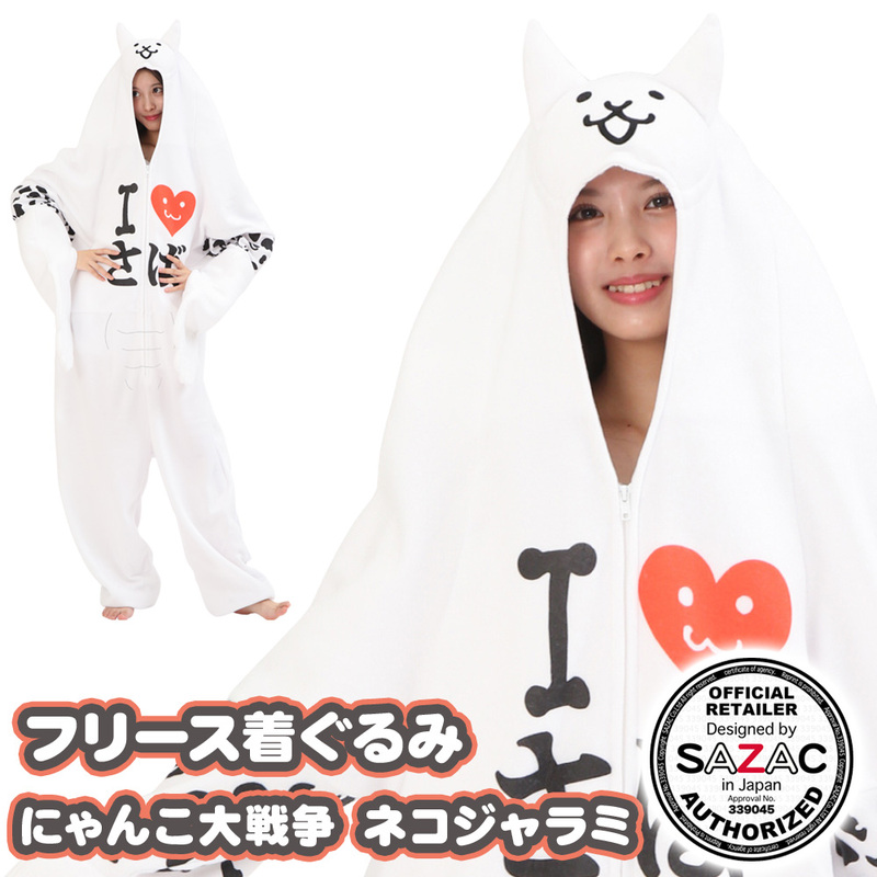 【取寄品】 コスプレ 仮装 SAZAC(サザック) フリース着ぐるみ にゃんこ大戦争 ネコジャラミ,ハロウィン,仮装,衣装,コスプレ,コスチューム,大人用,パーティーグッズ,余興,キャラクター,アニメ,SAZAC,サザック,着ぐるみ,きぐるみ,キグルミ,パジャマ,かわいい,可愛い,女性用,男性用,男女兼用,レディース,メンズ