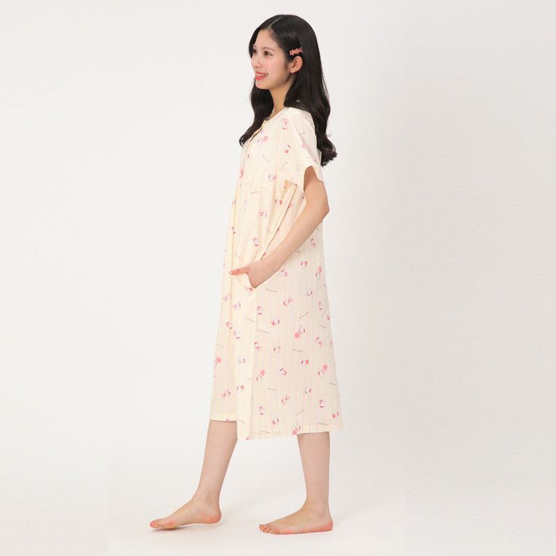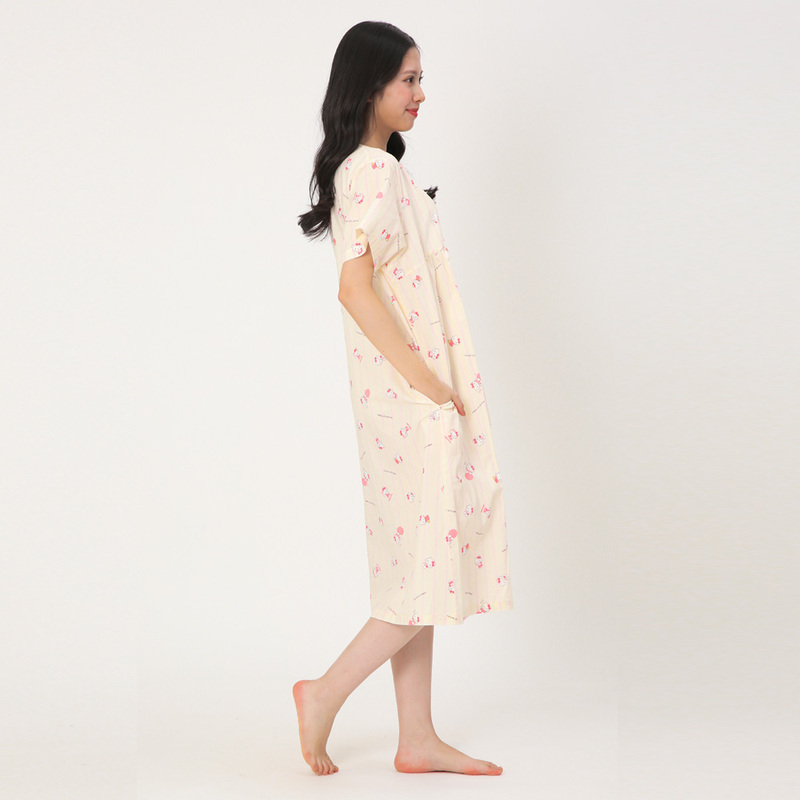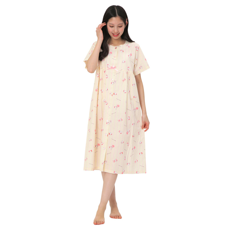 サンリオの人気キャラクター、ハローキティのワンピースは、ルームウェアとしてもおすすめです。ハローキティのかわいらしいデザインで、毎日のくつろぎタイムが癒しのひとときになります。さらに、着心地と寝心地も抜群で、リラックスした時間をより快適に過ごせます