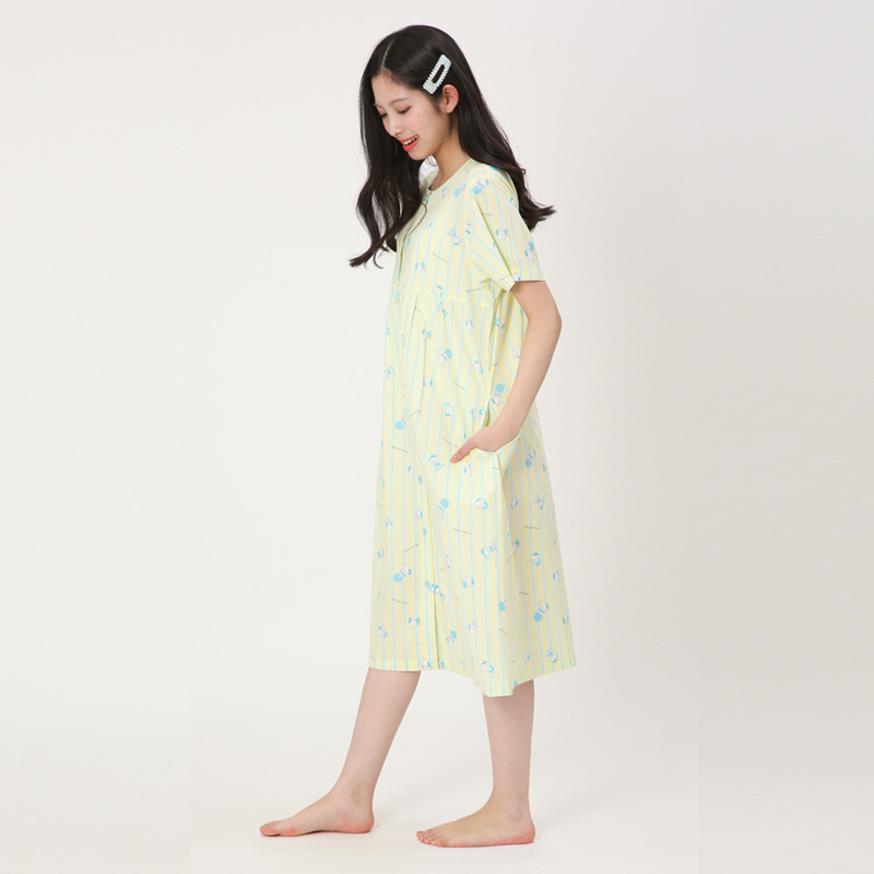 【取寄品】 SAZAC(サザック) ストライプハローキティワンピース レモン レディスM〜L,レディース,ファッション,女性用,大人用,ルームウェア,部屋着,パジャマ,寝巻き,寝間着,サンリオ,SAZAC,サザック,キャラクター