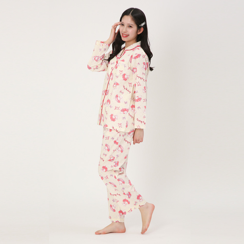 サンリオの人気キャラクター、マイメロディのシャツパジャマは、ルームウェアとしてもおすすめです。マイメロディのかわいらしいデザインで、毎日のくつろぎタイムが癒しのひとときになります。さらに、着心地と寝心地も抜群で、リラックスした時間をより快適に過ごせます