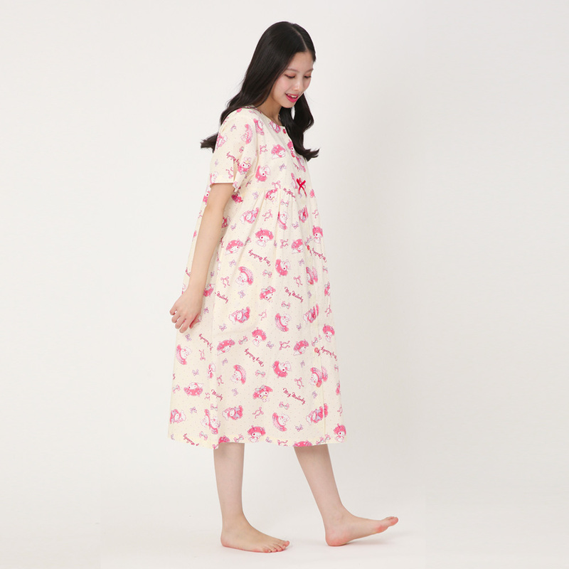 サンリオの人気キャラクター、マイメロディのワンピースは、ルームウェアとしてもおすすめです。マイメロディのかわいらしいデザインで、毎日のくつろぎタイムが癒しのひとときになります。さらに、着心地と寝心地も抜群で、リラックスした時間をより快適に過ごせます